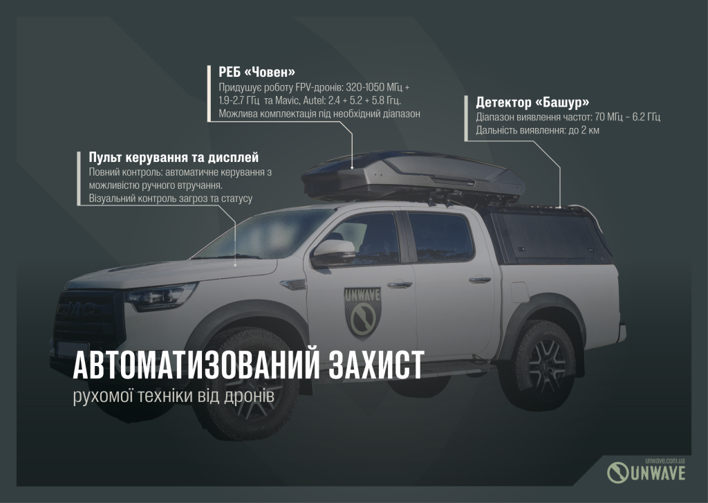 Повний діапазон захисту для автомобіля — в одному універсальному корпусі. Мобільний захист від БпЛА без компромісів